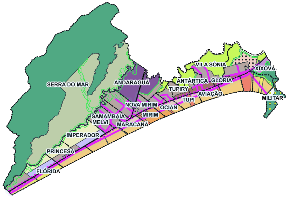 LC 615/2011 - Disciplina o ordenamento do uso, da ocupação e do parcelamento do solo na Estância Balneária de Praia Grande e dá outras providências e suas alterações na LC 647/2013. Os dados aqui relacionados apresentam a delimitação das zonas e corredores comerciais estabelecidos pela Lei Complementar.